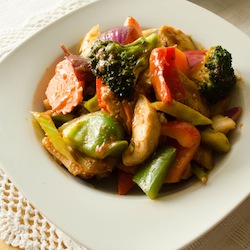 Yummy stir-fry with meat of your choice, fresh vegetables, and pineapple.
